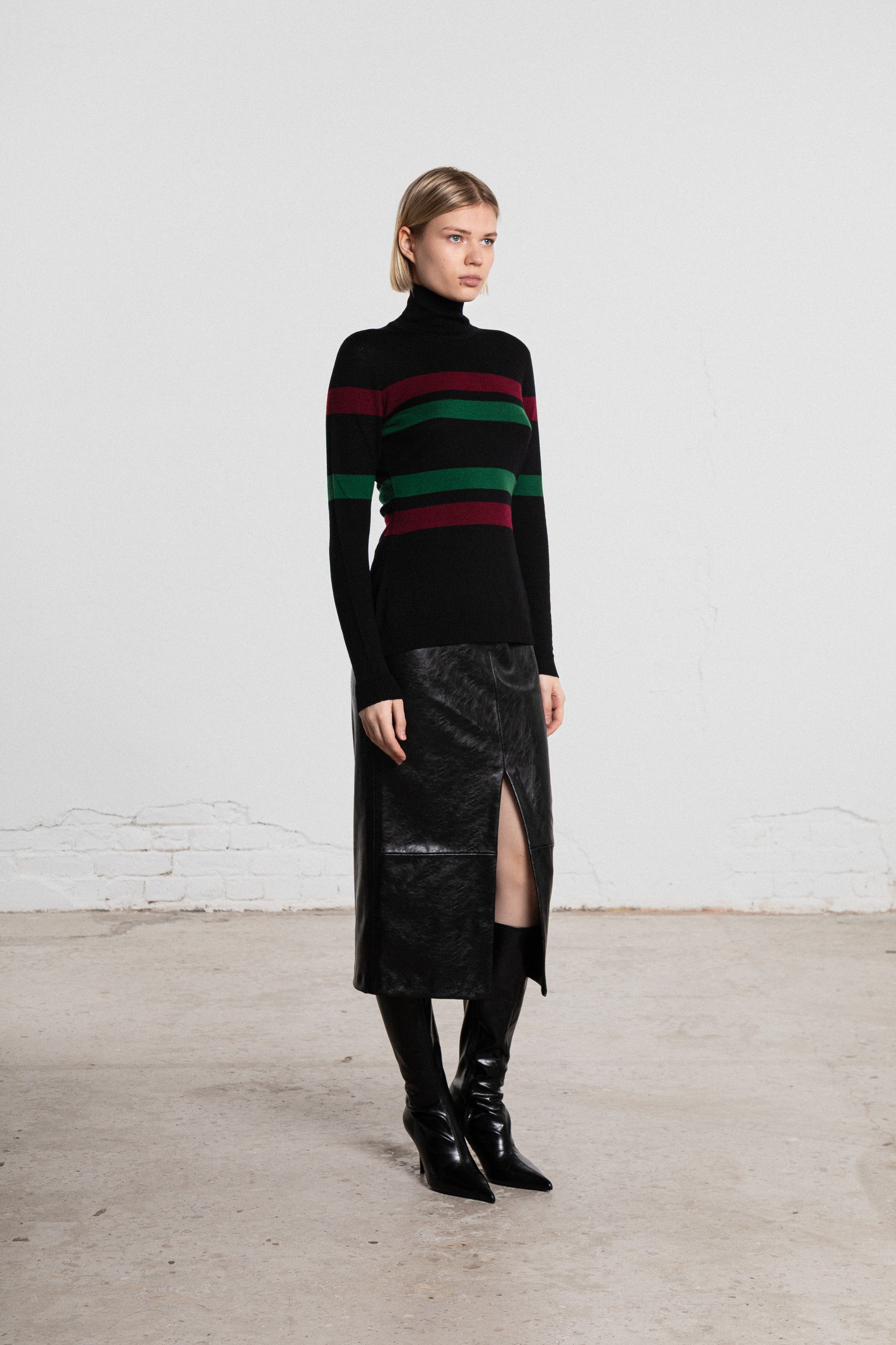 Architectural Stripe Turtleneck is a refined knitwear piece designed with a focus on structure, precision and modern minimalism.